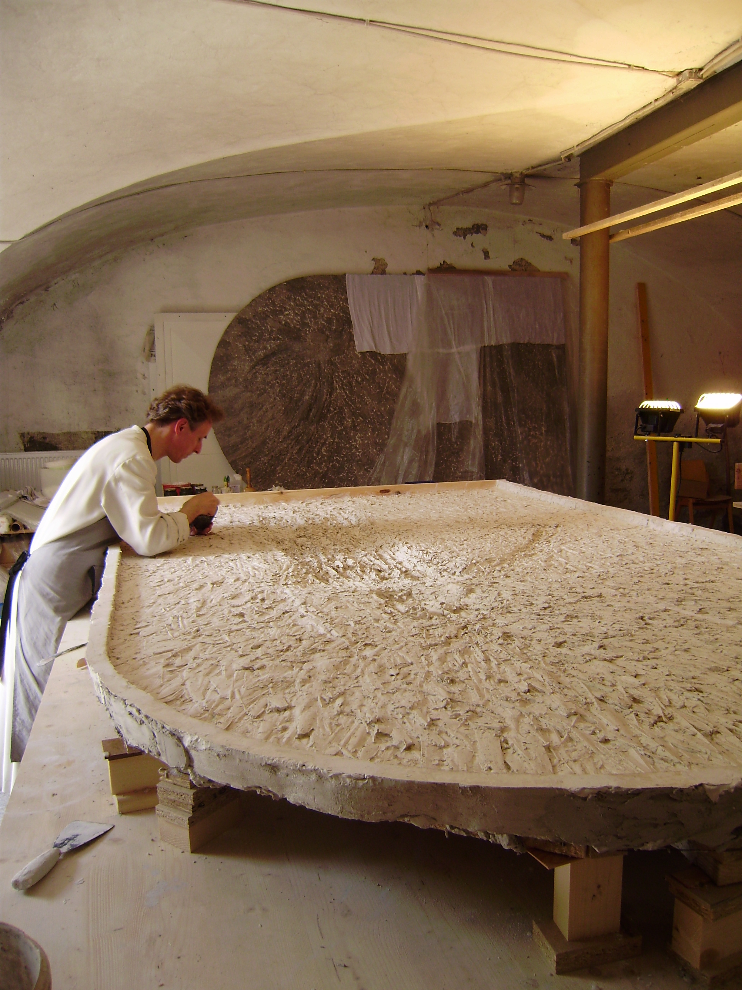 Arbeit an der Gipsform des Christus
